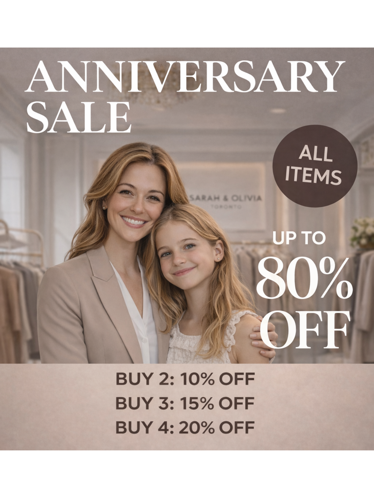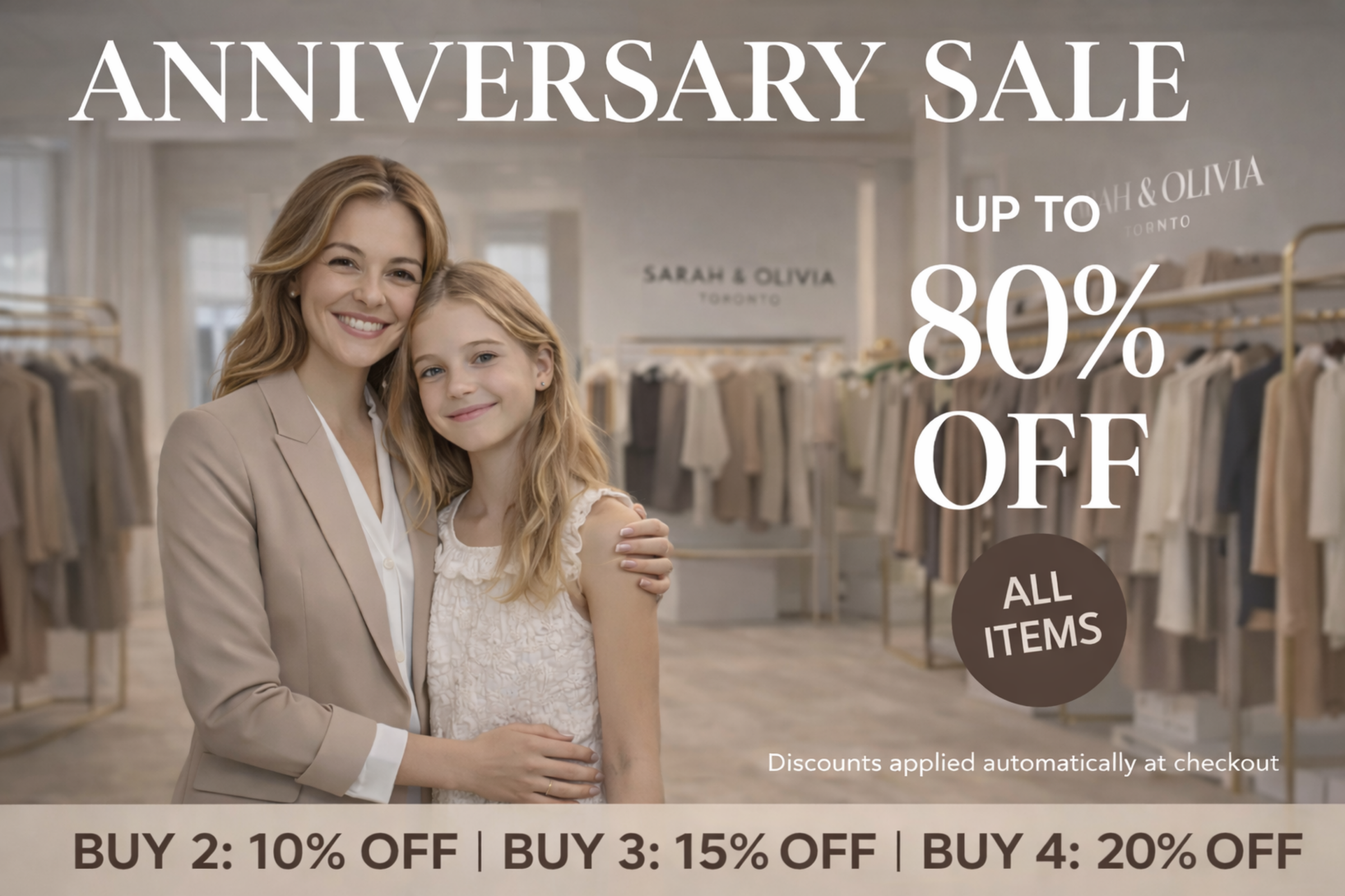 Sarah & Olivia began the year Olivia was born. Built on care, intention, and timeless style. This Anniversary Sale is our way of saying thank you for being part of our journey.
